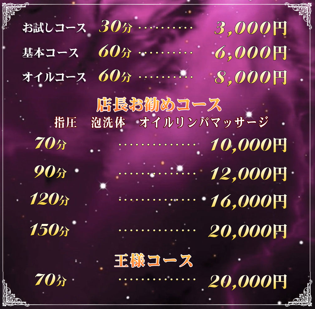 ※コーススタート後、キャンセルやチェンジ、早上がりなどに関しては一切返金できません。